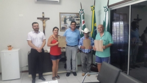Moradores do Conjunto Habitacional Tancredo Neves foram recebidos na manhã desta segunda-feira dia 18 de fevereiro no gabinete do prefeito Pedro Sergio Kronéis a fim de que assinassem o termo de entrega de escritura definitiva dos imóveis onde residem. No primeiro momento os cidadãos beneficiados pela medida foram três: Ademir Luiz Malaquias, João Prestes Ferreira e Neili de Fatima Smagars (clique na foto para visualizar em alta resolução). É importante ressaltar que outros moradores do bairro também podem manifestar interesse na concessão da escritura definitiva devendo comparecer na Prefeitura para requererem o benefício. Para o prefeito Sergio a entrega significa mais segurança jurídica e também a valorização do patrimônio das famílias. A Procuradoria do Município, através do advogado Ronny Carvalho da Silva, atuou com eficiência no processo a fim de que os trâmites e prazos legais fossem devidamente cumpridos. Através de um termo assinado pelas partes interessadas, os beneficiários da medida ficaram cientes de que a partir de então, encontram-se investidos na qualidade de legítimos proprietários dos imóveis descritos nas respectivas matrículas, que foram devidamente registradas no Cartório de Imóveis da Comarca de Wenceslau Braz.